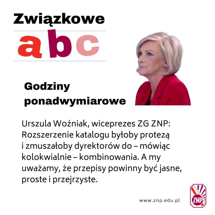 – Rozszerzenie katalogu byłoby protezą i zmuszałoby dyrektorów do – mówiąc kolokwialnie – kombinowania. A my uważamy, że przepisy powinny być jasne, proste i przejrzyste – powiedziała Urszula Woźniak na konferencji prasowej #ZNP.