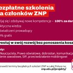Rozwijaj się i zdobywaj nowe kompetencje za darmo! Szkolenia ZNP to: ✔ praktyczna wiedza ✔ doświadczeni prowadzący ✔ 100% gratis Inwestuj w swój rozwój bez ponoszenia kosztów! Tematy szkoleń 2026: Sprawdź terminy bezpłatnych szkoleń ZNP w całej Polsce na: https://znp.edu.pl/projekty